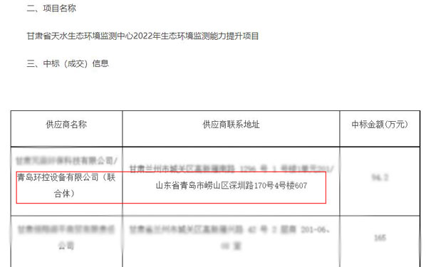 甘肅省天水生態(tài)環(huán)境監(jiān)測中心2022年生態(tài)環(huán)境監(jiān)測能力提升項目中標公告