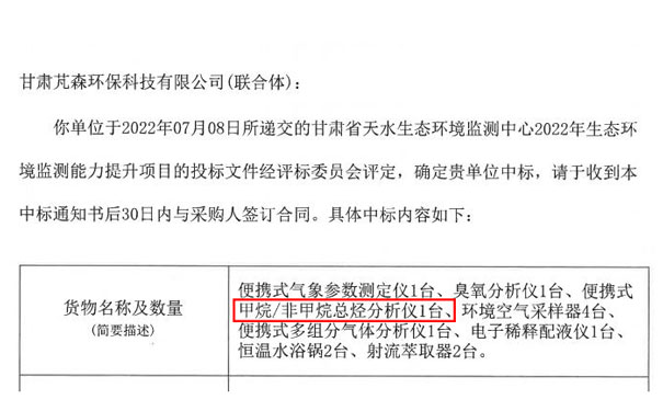 我司中標PF-300便攜式甲烷、總烴和非甲烷總烴分析儀1臺