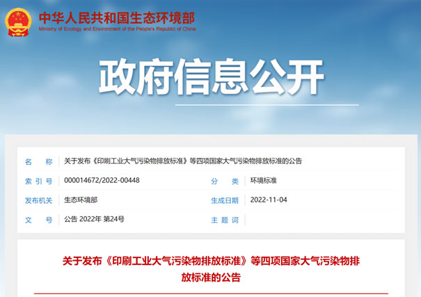 《印刷工業(yè)大氣污染物排放標(biāo)準(zhǔn)》(GB41616-2022),規(guī)定了印刷工業(yè)大氣污染物排放控制要求、監(jiān)測和監(jiān)督管理要求。