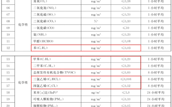 一:新標(biāo)準(zhǔn)增加了三氯乙烯、四氯乙烯兩個(gè)參數(shù),提出了限值要求,并且降低了苯的濃度限值。