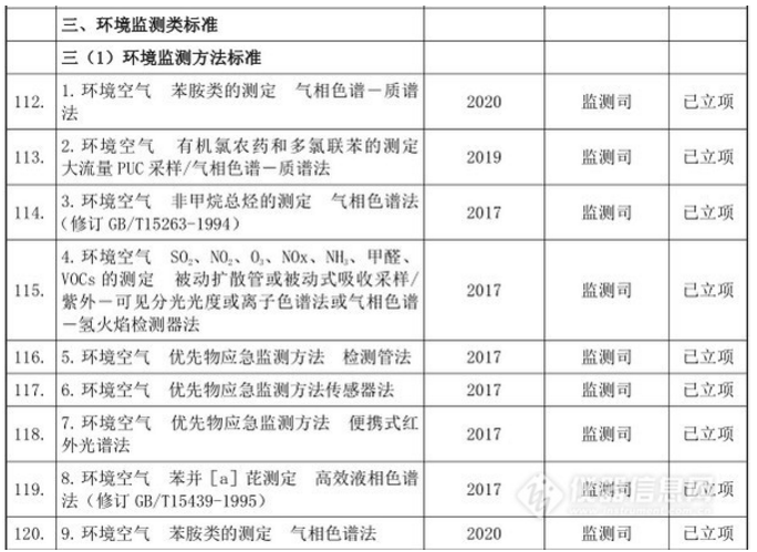 儀器信息網(wǎng)編輯摘錄環(huán)境監(jiān)測(cè)類標(biāo)準(zhǔn)規(guī)劃及儀器標(biāo)準(zhǔn)清單如下,更多信息請(qǐng)見(jiàn)國(guó)家環(huán)境保護(hù)標(biāo)準(zhǔn)“十三五”發(fā)展規(guī)劃.pdf。