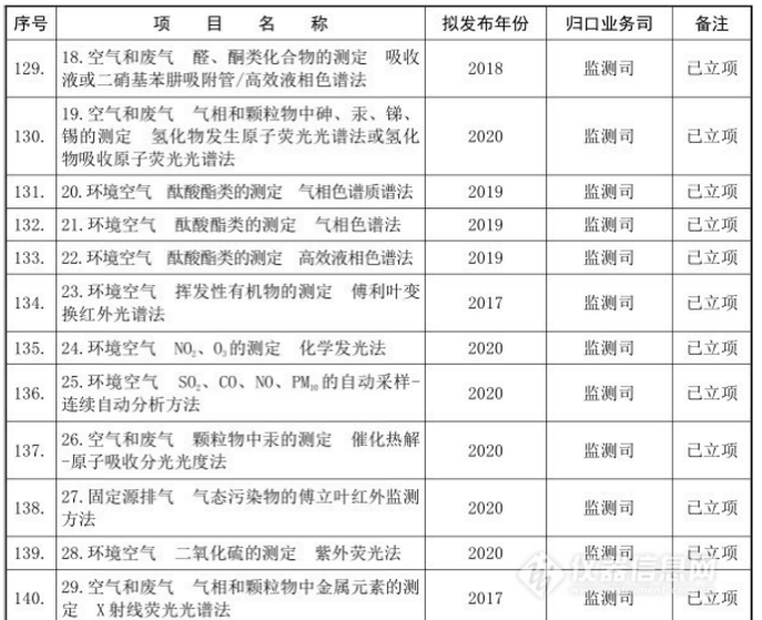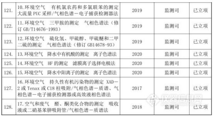 十三五”國(guó)家環(huán)境保護(hù)標(biāo)準(zhǔn)制修訂項(xiàng)目清單(儀器部分)